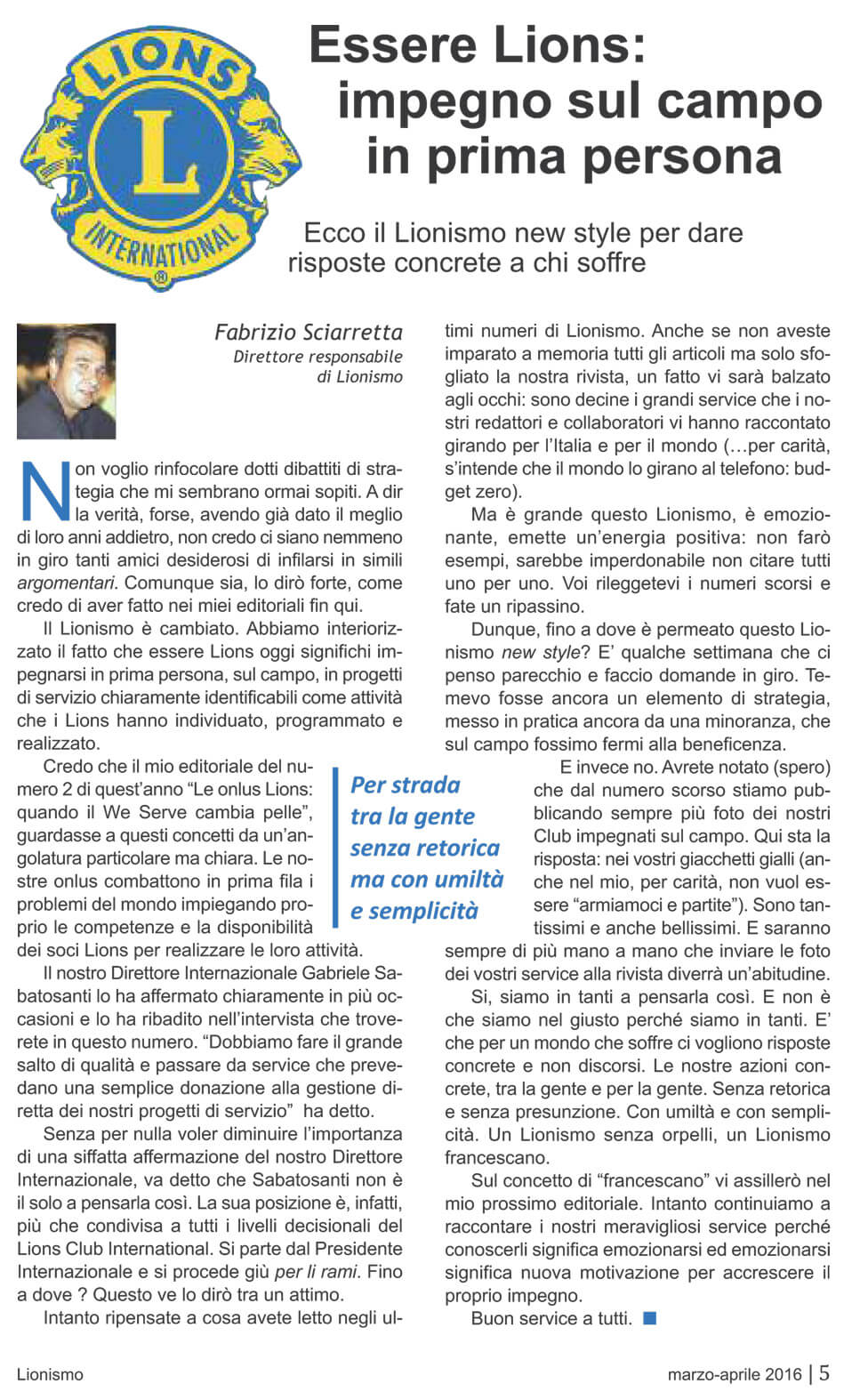 Se vuoi leggere l’articolo completo (Lionismo n. 4-2015/16) clicca qui: Essere Lions: impegno sul campo in prima persona