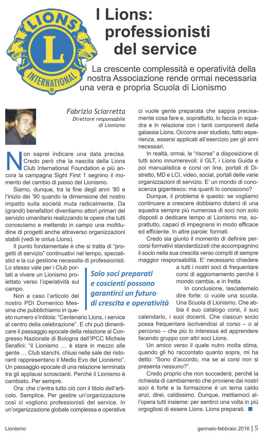 Se volete leggere l’articolo per intero (Lionismo 3 – 2015/16), cliccate qui: “Lions. Professionisti del Service”